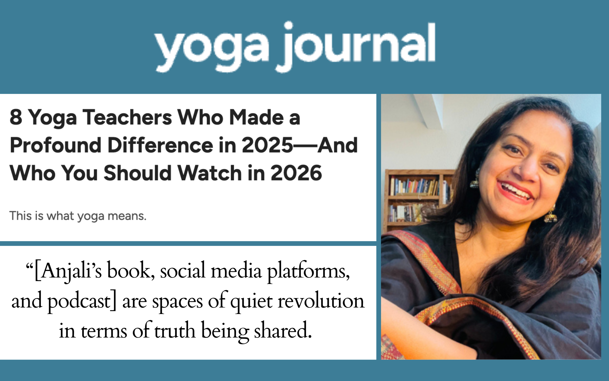 “[Anjali’s book, social media platforms, and podcast] are spaces of quiet revolution in terms of truth being shared. “