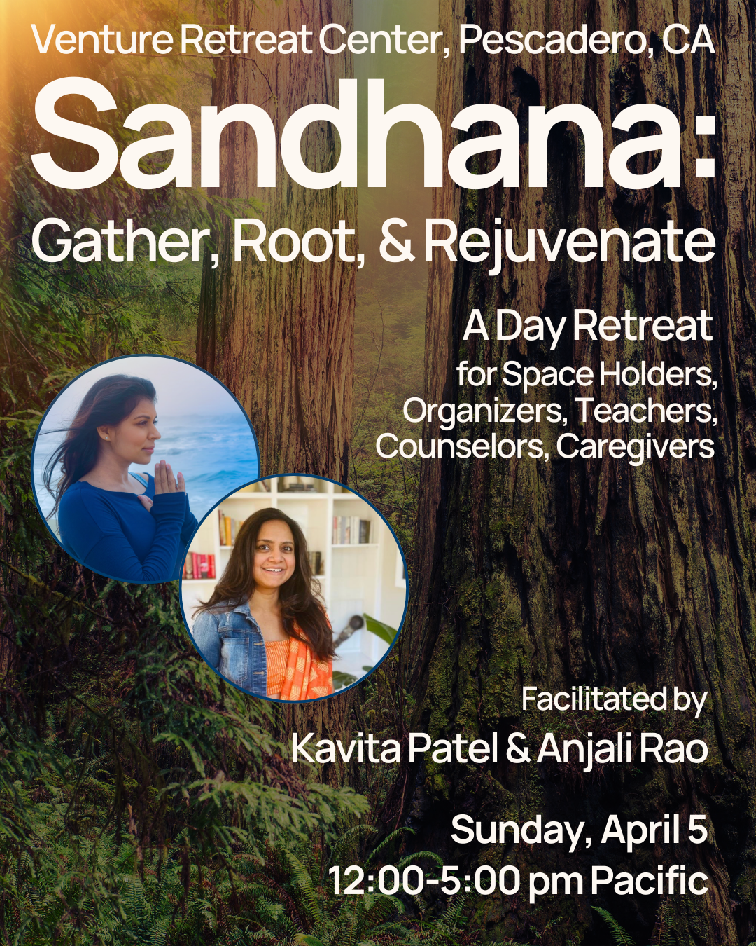Join Anjali and Kavita for a deeply nourishing day to feel into your body surrounded by the majestic redwoods.